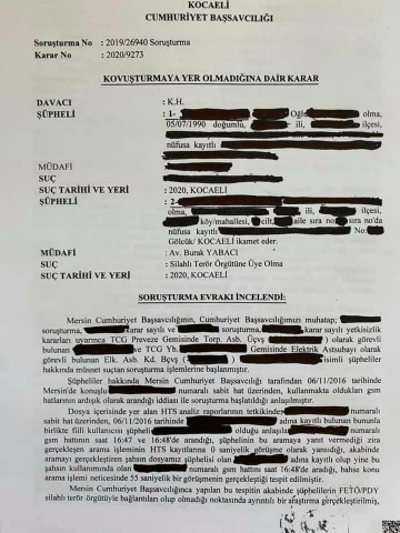 Ekte resmi yer alan savcılık kararı incelendiğinde ankesörlü telefondan aranma nedeniyle haklarında soruşturma yürütülen asker kişilerin görevli oldukları ilden aranma kayıtlarının olmaması ve var olan aranmalara ilişkin yaptıkları savunmalar da gözetilerek ilgililer hakkında kovuşturmaya yer olmadığına dair karar verilmiştir;