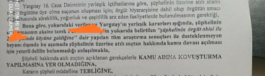 Ekte ilgili kısmı yer alan takipsizlik kararı incelendiğinde tanık beyanları nedeniyle asker kişi hakkında yürütülen adli soruşturma sonucunda tanık beyanlarının yan delillerle desteklenmemesi nedeniyle ilgili hakkında kovuşturmaya yer olmadığına dair karar verilmiştir, kararın ilgili kısmı ektedir;