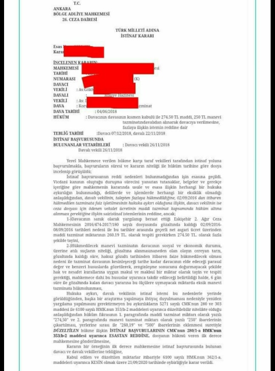 Ekte resmi yer alan Bölge Adliye Mahkemesi kararı incelendiğinde 8 günlük gözaltı süresi için maddi ve manevi tazminat olarak toplam 760 TL hükmedilmiştir, karar ektedir;