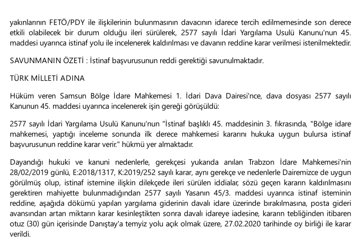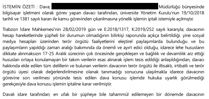 Ekte resmi yer alan Bölge İdare Mahkemesi kararı incelendiğinde Bank Asya hesabı ile 17-25.12.2013 öncesine dair eylemlerin ilgili aleyhine değerlendirilmeyeceğine dair İdare Mahkemesinin kararı yerinde bulunarak kurumun istinaf başvurusunun reddine karar verilmiştir, banka hesabı üzerinde bilirkişi incelemesi yaptırılmış ve şüpheli hareketlere rastlamilmamıştır, 17-25.12.2013 öncesi eylemler ilgili aleyhine değerlendirilmemistir, yine kişinin sosyal medya paylaşımları lehe karar vermede etkili olmuştur.