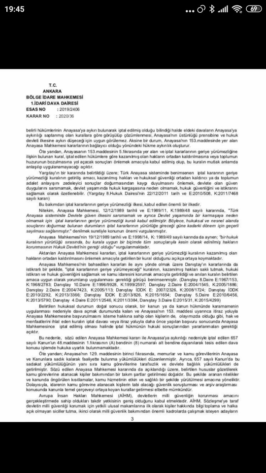 atanamayacağına ilişkin yeniden bir işlem tesis edilmesi gerektiği kuşkusuzdur. Ayrıca, yeni yasal düzenleme uyarınca yapılacak değerlendirmenin sonucunda davacı açısından yine olumsuz bir sonucun ortaya çıkması halinde, bunun yargısal denetiminin mümkün olması nedeniyle, davacının durumunun yeniden değerlendirilmesi davacıyı güvencesiz bırakmadığı gibi, Anayasa Mahkemesinin aktarılan gerekçesi karşısında bu durum, bir hak ihlali de doğurmamaktadır."
