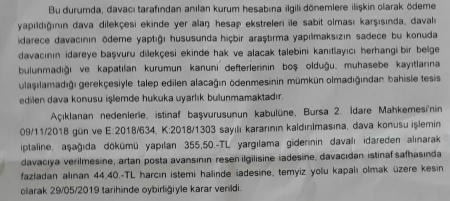 Ekte resmi yer alan BİM kararına göre iltisaklı olduğu iddiasıyla kapatılan okula ödenen eğitim ücretinin iadesine yönelik talebin reddine dair idari işlemin iptali amacıyla açılan dava İdare Mahkemesince red edilmiştir,  redde dair karara yapılan istinaf başvurusunun BİM'ce kabulüne karar verilmiştir, bu karardan sonra ilgili kamu dairesi yeniden araştırma yaparak karar verecektir. Kamu idaresi yeniden yaptığı araştırma sonucunda ESASTAN İNCELEME YAPARAK ÖDEME TALEBİNİN REDDİNE KARAR VERMİŞTİR, yeni tesis edilen idari işleme de karşı yeniden dava açılabilir.