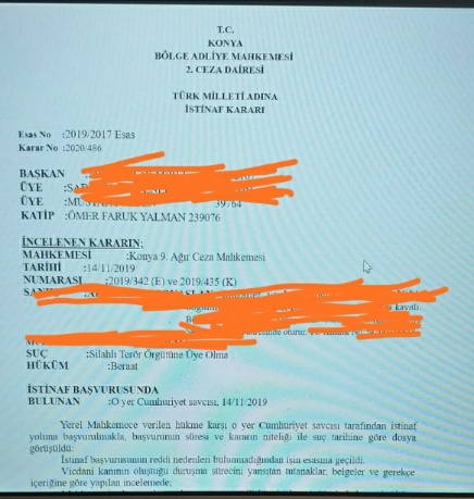 Savunmasını hazırladığım bir polis memuru hakkında Konya 9. Ağır ceza mahkemesince beraat kararı verilmişti, beraat kararına Cumhuriyet Savcısı tarafından yapılan İstinaf Başvurusu da Konya BAM 2. Ceza Dairesince 03.06.2020 günü red edilmiştir, kararı paylaşıyorum; UMARIM HERKES AÇISINDAN ADALET TEZ ZAMANDA TECELLİ EDER.