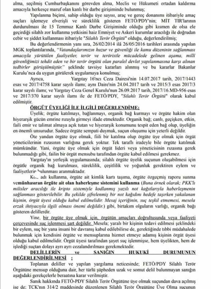 ..... sanığın aleyhine değerlendirilecilecek delillerden ilki Ankara Cumhuriyet Başsavcılığının * sayılı soruşturma kapsamında ele geçirilen Micro SD kartta bulunan ve Örgüt tarafından Emniyet Genel Müdürlüğü Fişleme kayıtlarında sanıkla ilgili 'Fetö mensubu olup her şeyiyle teslim olan,ancak yöneticilik vasıfları olmayan polis memuru anlamına gelen 'SAY' kodlamasının yapılmış olması,diğeri isimli şahsın tanık beyanlarıdır.