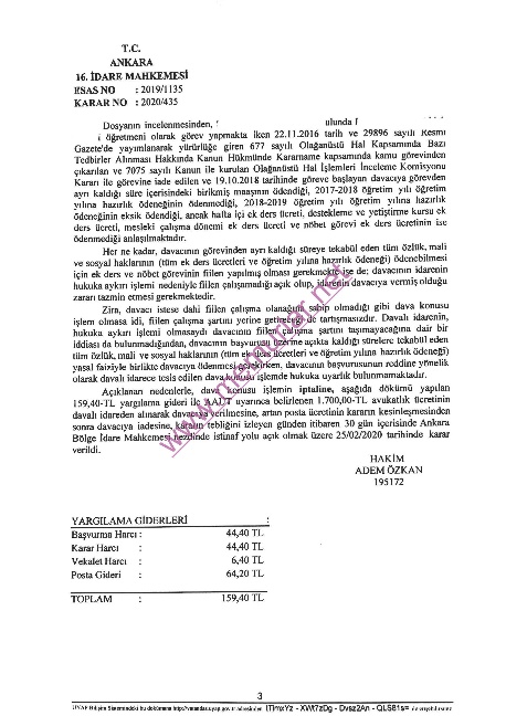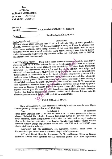Ekte resmi yer alan İdare Mahkemesi kararı incelendiğinde göreve iade öğretmene özlük haklarının faiziyle ödenmesi gerektiğine karar verilmiştir, bu kapsamda ek ders ücretleri ile eğitim öğretim yılına hazırlık ödenekleri de ödenecektir, her ne kadar bu ücretler fiili çalışma gerektirse de idarenin haksız ve hukuksuz işlemi ile ilgilinin ihraç edilmesi nedeniyle o dönemde çalışamaması aleyhine değerlendirilmemiştir. BU KABULLE TÜM EK ÖDEMELERİN GÖREVE İADE EDİLENLERE ÖDENMESİ GEREKMEKTEDİR, MESLEK FARKETMEKSİZİN TÜM ÜCRETLERİN İLGİLİYE ÖDENMESİ GEREKİR.