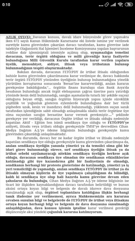Ekte yer alan İdare Mahkemesi Kararında yer alan azlık oyu incelendiğinde ceza mahkemesinin tespitlerine atıf yapıldığı görülecektir, ilgili hakkında verilen beraat kararı üzerinde durulmuştur, sendika ile Cihan Medya Ödemesi kriterleri nedeniyle davanın reddine OYÇOKLUĞUYLA karar verilmiştir.