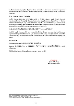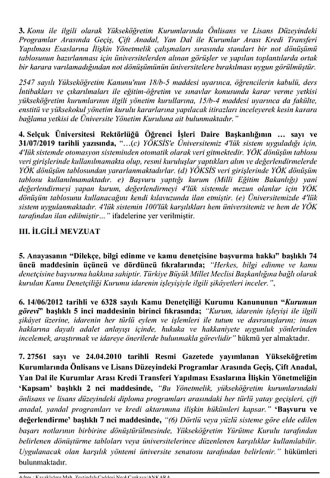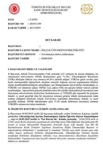 Kamu Denetçiliği Kurumu, Yükseköğretim Kurulunun dörtlük not dönüşüm tablosuna dair adayın yapmış olduğu itirazı reddetti. Karar ektedir;