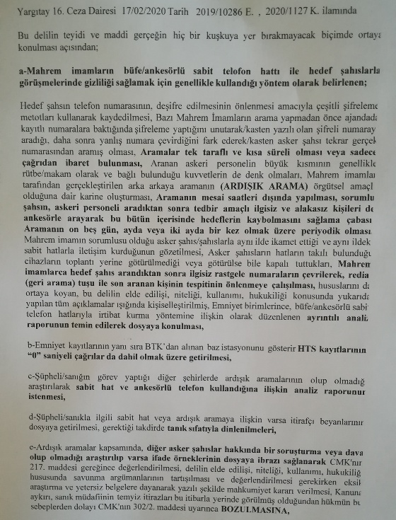 Ankesörlü veya sabit hattan aranmalara ilişkin genel ilkelere atıf yapılan 17.02.2020 tarihli Yargıtay kararı