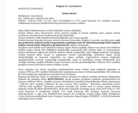 Ekte resmi yer alan Yargıtay kararında yurtdışı gezisinin örgütsel faaliyet olarak yapıldığına dair delil bulunmaması halinde örgütsel eylem olarak kabul edilemeyecektir.