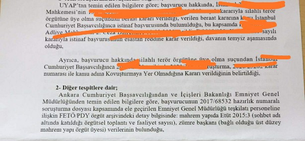 Ohal Komisyonunun salgın döneminde de çalıştığını göstermektedir, polis memurunun müracaatı ile ilgili verilen red kararı ektedir, sadece Garson Kodlaması bulunmaktadır.